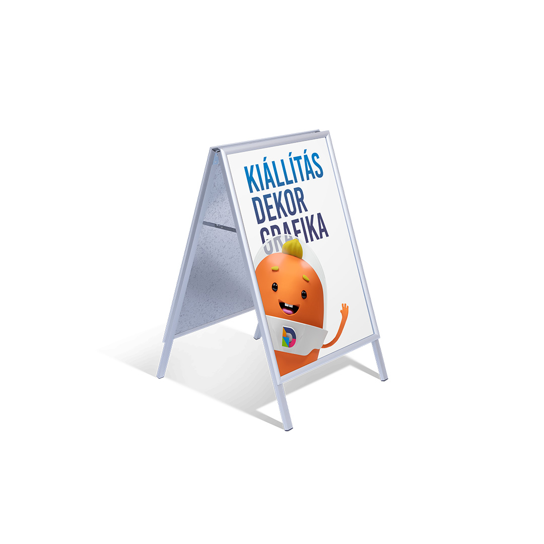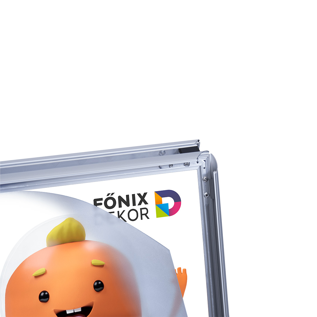 Szerkezet: Kétoldalas, rugós záródású, 25 mm széles eloxált alumínium keret lábbal, tükröződésmentes fóliával.A belehelyezhető plakát mérete 594×841 mm